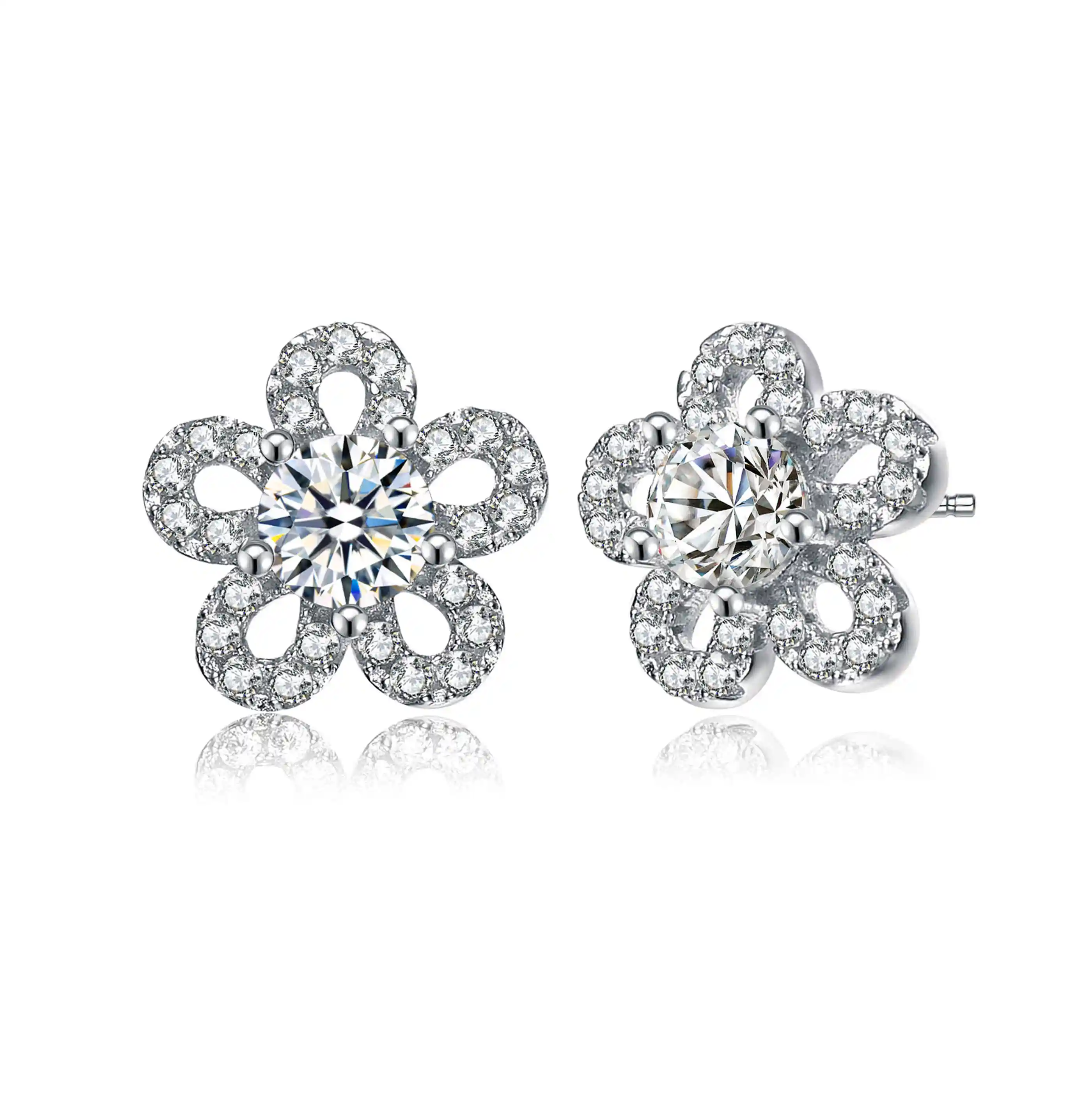 925 Sterling Silver Flower Stud Earrings with White CZ & Zircon Cute Trendy Design for Women for Wedding or Christmas Gift